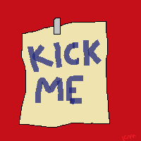 Taped-on sign. This player has made an enemy. And will be fined $500 because his number is obscured, which is mega off-brand.