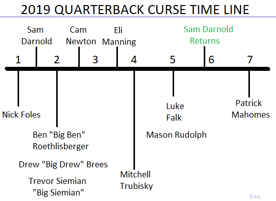 […] to Week 2 when the Jets’ Sam Darnold came down with mono, initiating the most devastating Quarterback Curse since 1873. Now Darnold and most of his QB friends are back in action and doing better than ever! […]