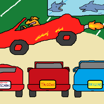 Filming for Air Bud VIII: NASCAR Pup Series. Perfect location! And if Air Bud IV crashes his car, he can just borrow an NCAA salary car. Great thinking!