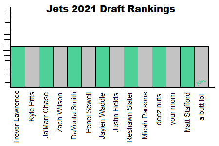 This year, the New York Jets–the third most popular team in all of New York!–have the #2 pick. Jets coach Robert Saleh and his team have poured over data for months, getting ready to draft the perfect player to join the team in their title run! But look, folks, numbers can only tell you so much. Sometimes you just have to trust your gut.