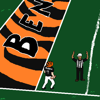 After the half, as the Bengals exited the locker room, Bengals QB Joe Burrow jogged up to Jerome Boger to find out if the officials couch cool it on the touchdown calls. But as he jogged over, Joe Burrow’s foot apparently crossed the end zone and Jerome Boger ruled yet another Bengals touchdown.