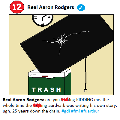 Some say the clock symbolizes that Rodgers’ time is up with the Packers. The broken television could mean that he isn’t planning on watching any football next year–and the NFL community is split 50/50 on if that’s because he’ll be playing football on Sundays or if he’s looking to make a clean break with all of football. Those who believe Rodgers will return for the Packers next year argue that the broken TV represents all that’s wrong with the NFL and Rodgers is throwing it in a Packers-colored trash can to symbolize starting anew with the organization. People who think Rodgers will play for a different team next season believe the green trash can is symbolic of the Packers and the broken TV stands for broken promises from Packers HQ.