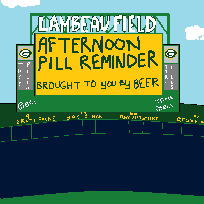 A change in advertising would also be a good idea. Longtime Packers fans know the deal about stadium food and cool Cheesehead merch at the Pro Shop! These loyal fans have had decades to plan their trips to Lambeau. What the new crowd could really use are some handy reminders on the jumbotron, just in case they get too wrapped up in the game. Gotta keep fans in tip-top shape.