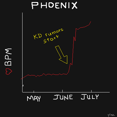 Phoenix area doctors, hospitals, and Alexas that are monitoring folks’ Fitbits are reporting a shocking increase in heartrate ever since the Kevin Durant trade rumors gained traction.