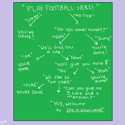 The news is full of stories about which NCAA schools are getting NFL-Jr. college football players of varying numbers of stars. But what do the conversations between the recruiters and the Jr. Professional NCAA Salaried football players look like behind the scenes?