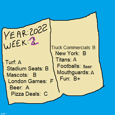 If we were looking at the score for “fun” alone, then the NFL would definitely be allowed to go to the cool party! Unfortunately until they can bring up the London Games grade, they’ll have to be grounded. Better luck next week!