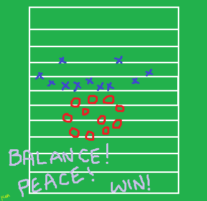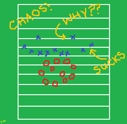 “Ugh! Look at this ugly mess! I can’t even tell what’s happening on this side of the field. Where are the x’s going? They certainly aren’t looking toward the future.”