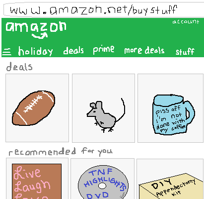 Okay, first you go to the Amazon home page! That’s where they tempt you with all kinds of things that you don’t need but they’re on sale, so you buy them anyway.